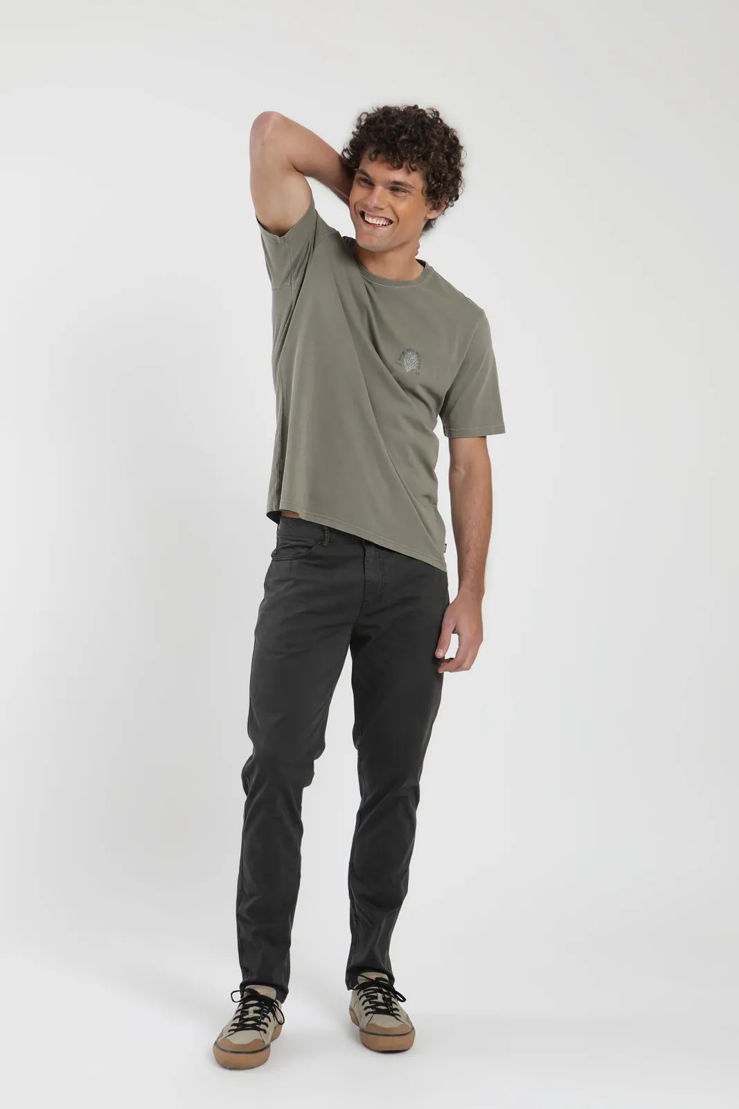 Polera manga corta hombre Mao grafito - Algodón orgánico