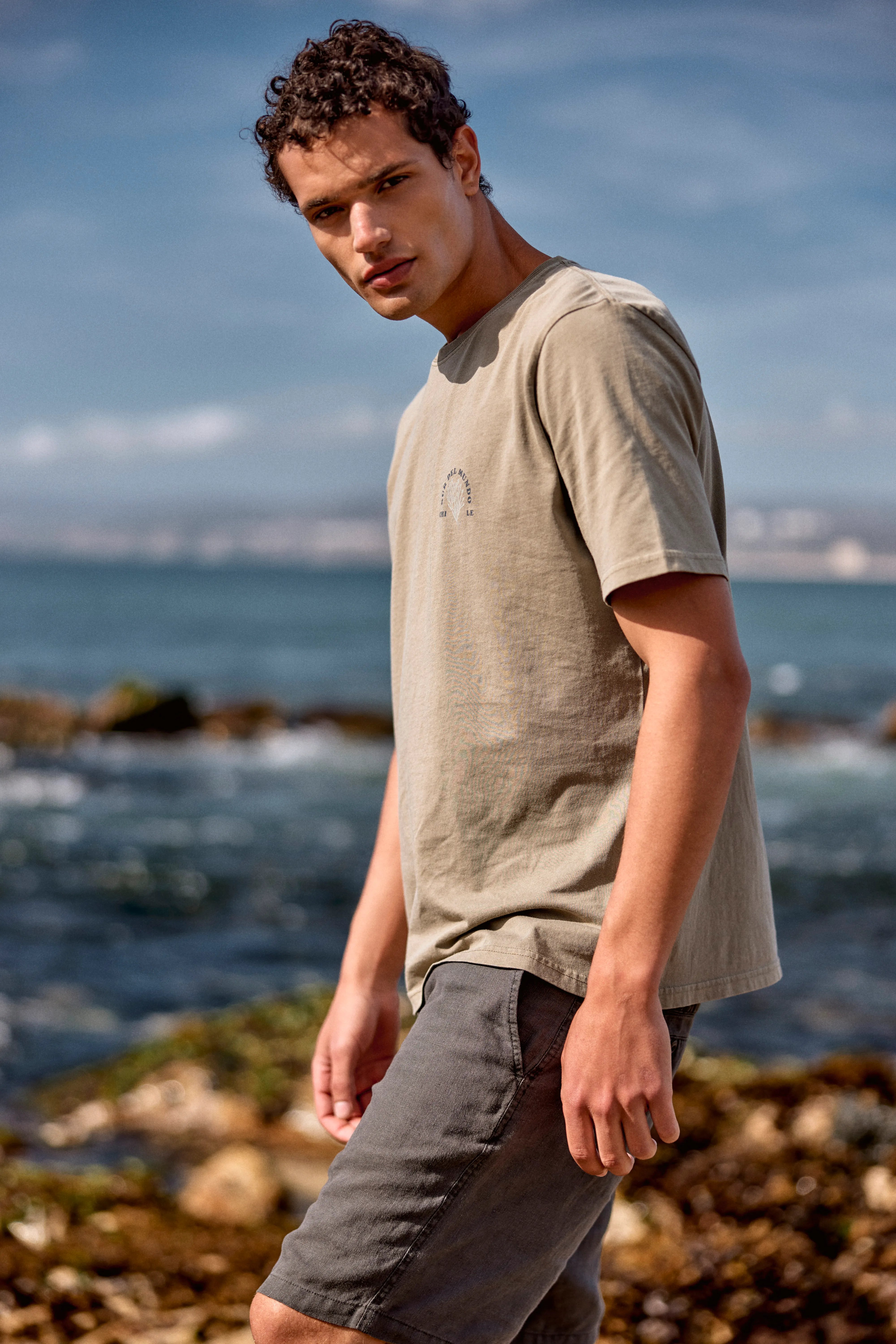 Polera manga corta hombre Vibes beige - Algodón orgánico
