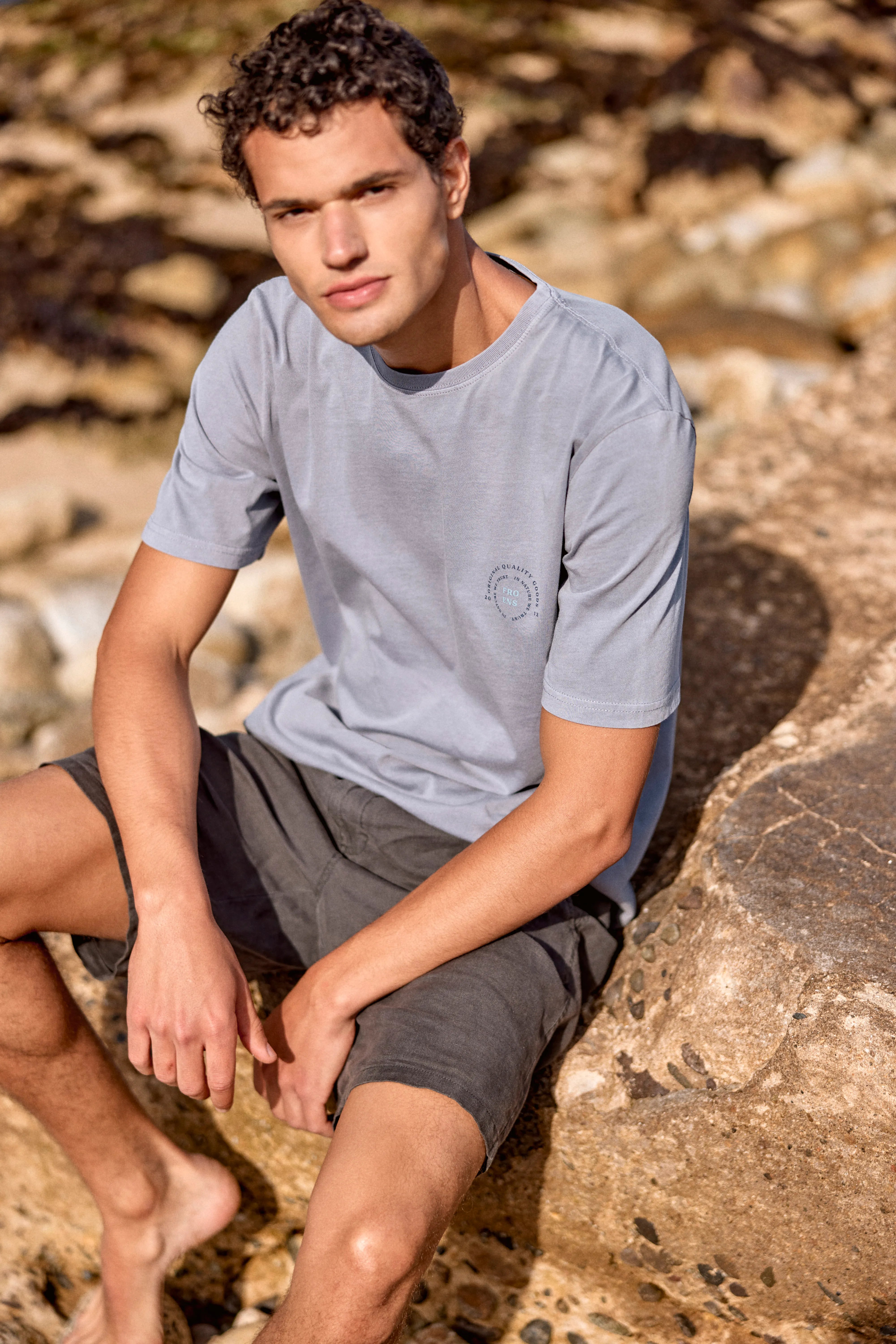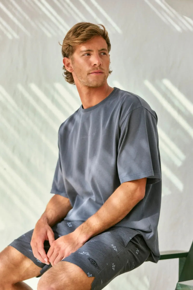 Polera manga corta hombre Oversize grafito - Algodón orgánico