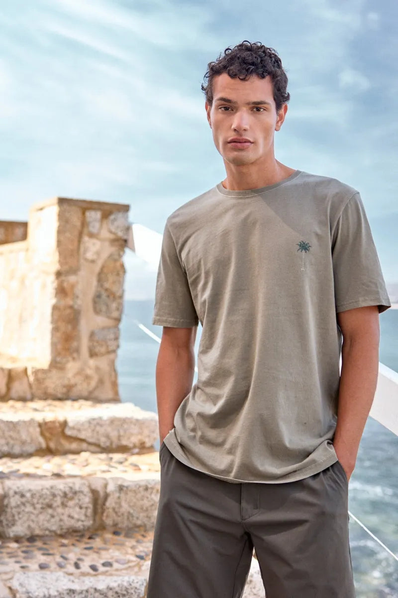 Polera manga corta hombre Palmeras verde - Algodón orgánico