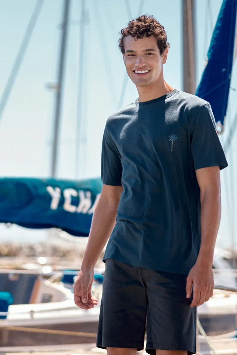 Polera manga corta hombre Palmeras azul - Algodón orgánico