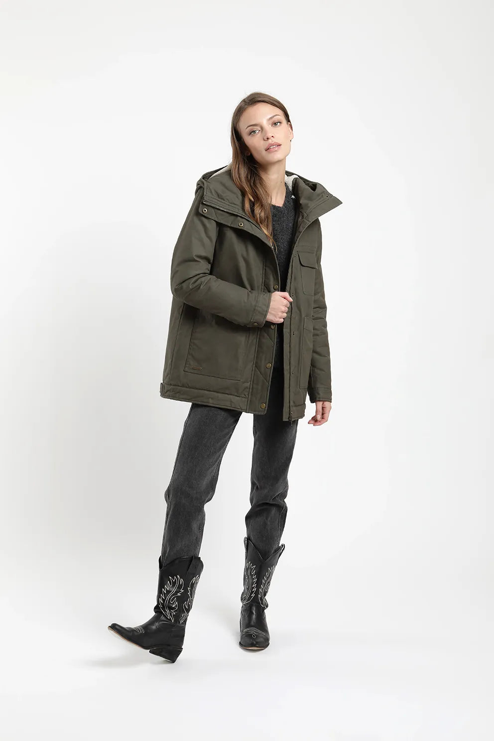 Chaqueta mujer Niebla verde wax - Algodón orgánico