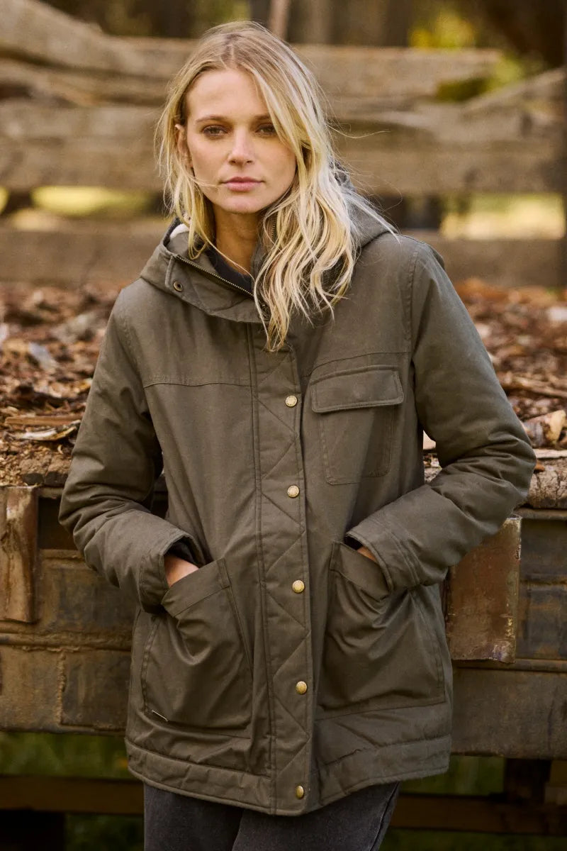 Chaqueta hombre Cali waxed olivo - Algodón orgánico