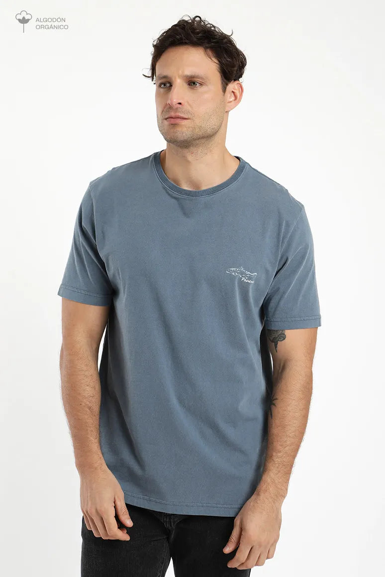 Polera manga corta hombre Pez azul - Algodón orgánico