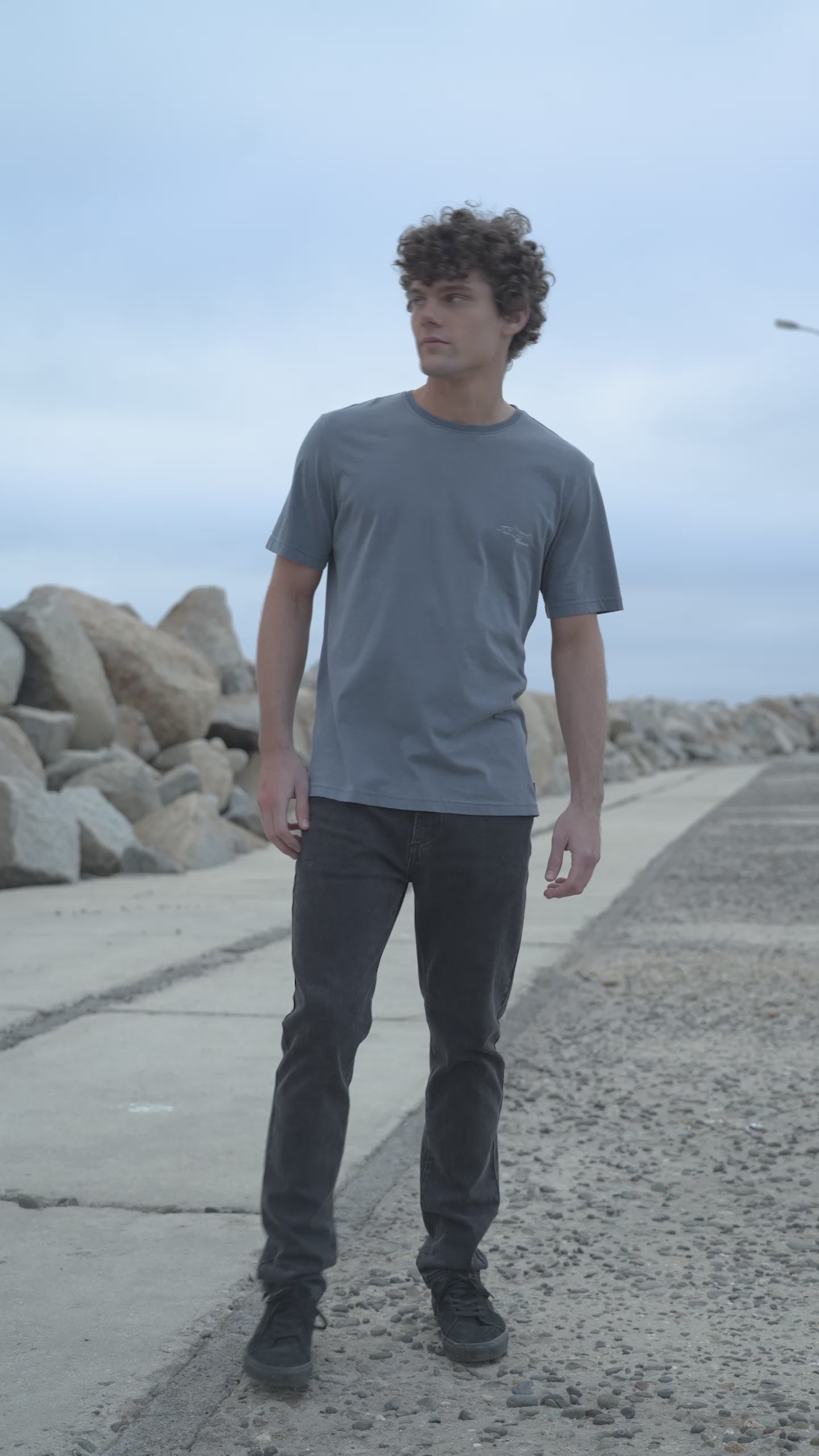 Polera manga corta hombre Bote grafito - Algodón orgánico