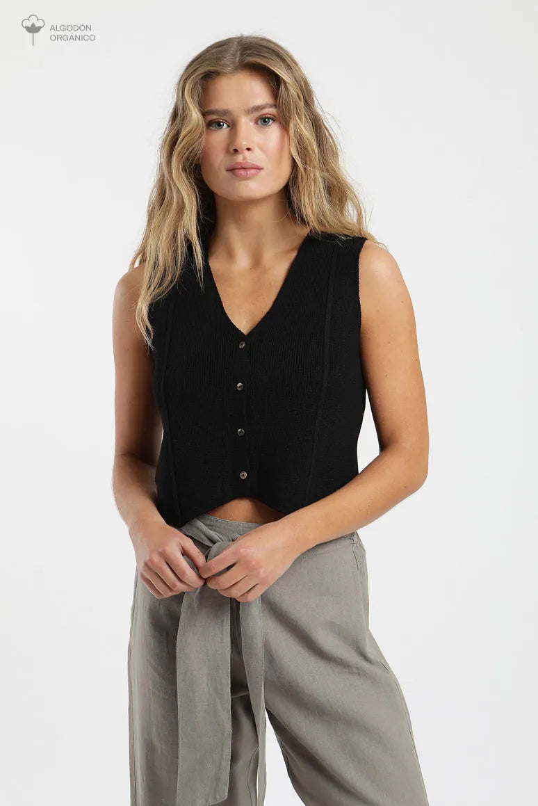 Polera Mujer Vest Tejido Negro - Viscosa