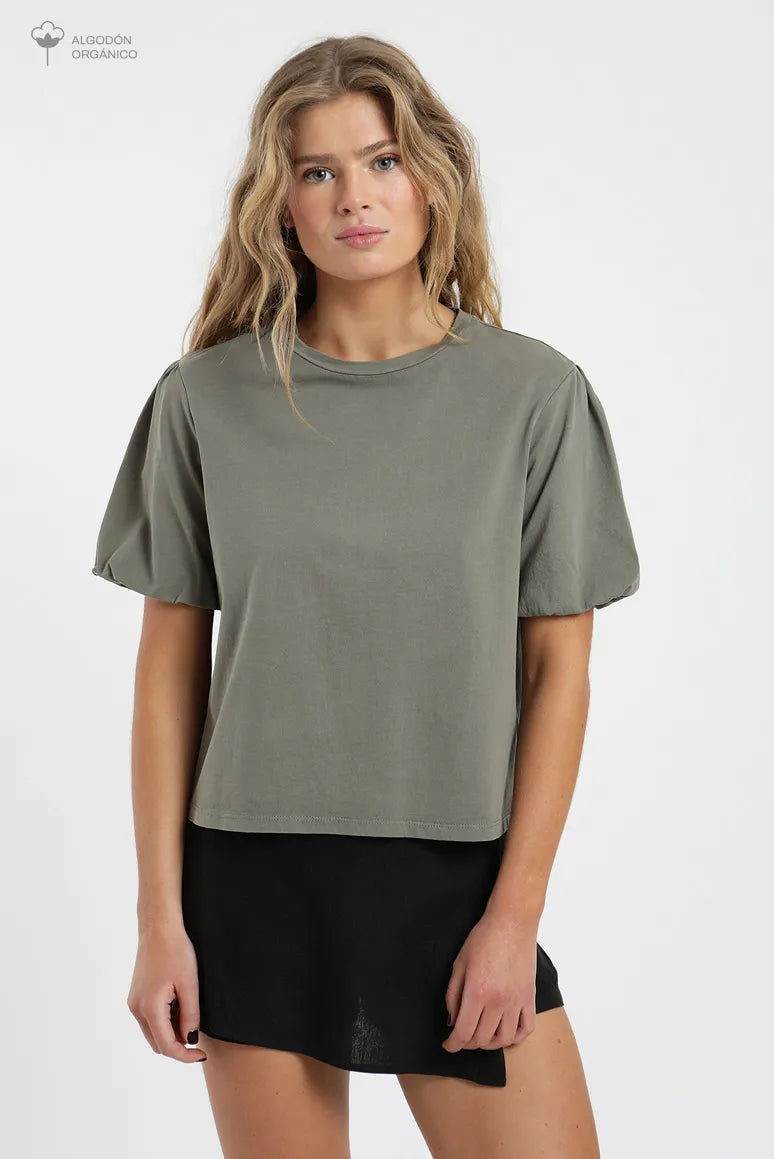 Polera Mujer Manga Corta Globo Verde - Algodón Orgánico