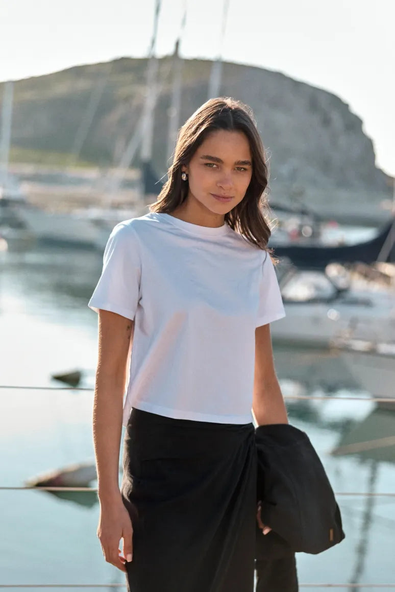 Polera Mujer Manga Corta Round Blanco - Algodón Orgánico