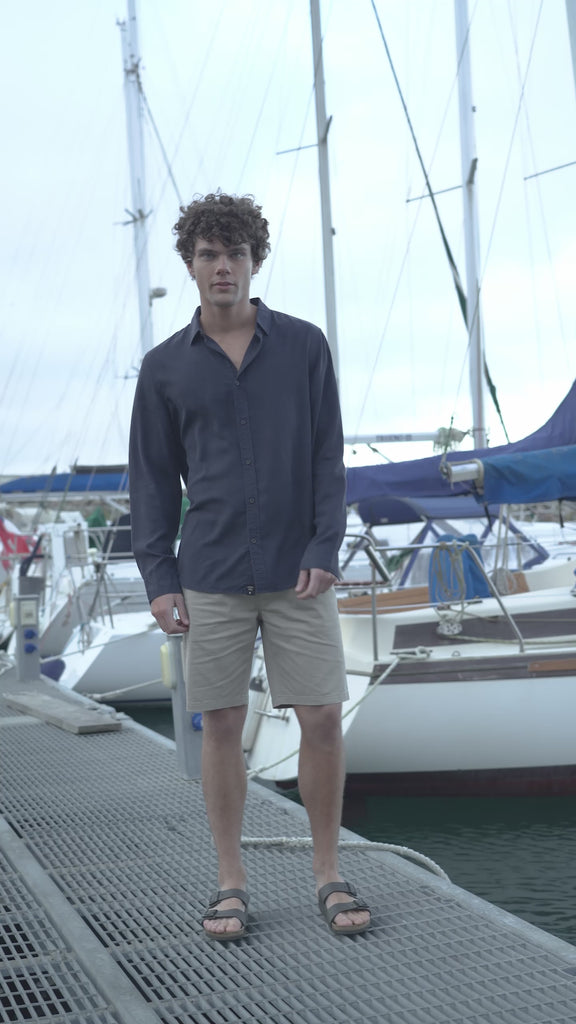Nueva camisa Street. Hecha en Tencel certificado, una tela ultra suave, liviana y fresca que se adapta a tu día a día con total comodidad. Encuéntrala en dos colores para combinar con lo que quieras.