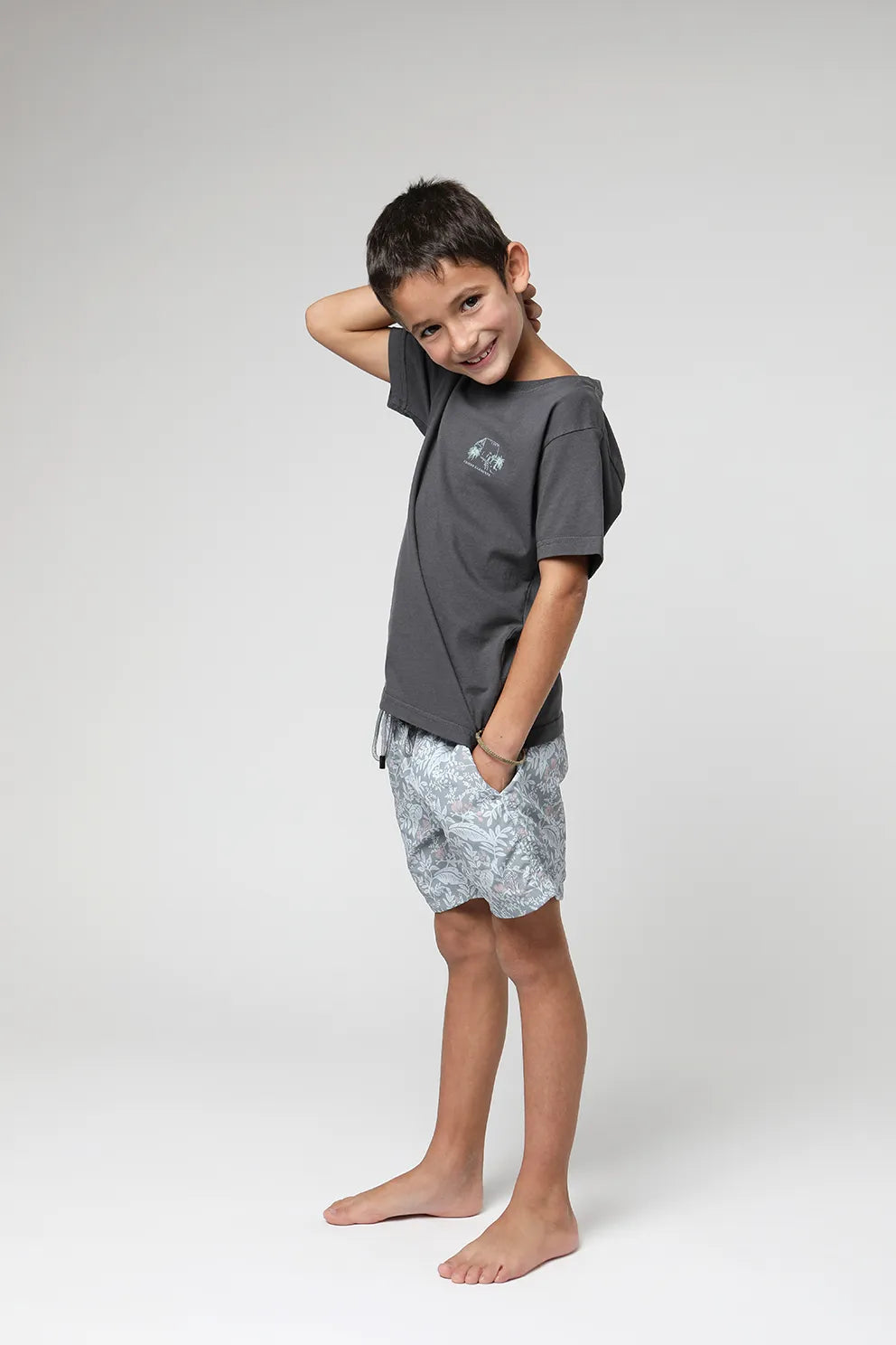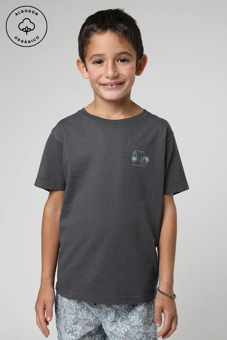 Polera manga corta kids Bungalow grafito - Algodón orgánico