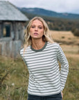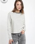 Polera manga larga mujer Rayas Azucena heavyweight verde - Algodón orgánico