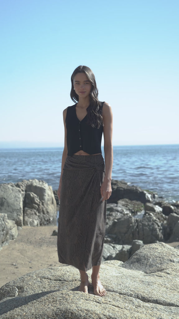 Vest tejido con pequeños botones en la parte frontal es la capa ideal para completar tu look.